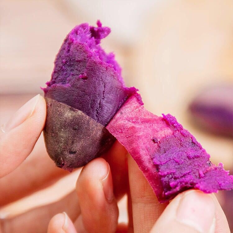 看看近几年的营养趋势,我们不难发现,粗粮的身影在我们餐桌上越来越常见了,可见大家对饮食健康问题愈发重视。 在粗粮中能让大家都垂涎三尺的莫过于薯类,甜甜软软的,烤后还流油,别提多诱人了! 有我们常见的红薯,还有紫薯,这一抹浪漫的紫,不但颜值高,现在在国际市场上也十分走俏。 它相较于红薯,颜色呈紫色至深紫色,皮薄肉厚,肉质细腻无丝无筋,一口下去入口即化,沙沙的薯泥,软软的,好糯好甜,看着就有诱人的食欲,可谓粗粮上品。 超迷你,这算它一大缺陷吧! 越迷你,越是精华满满,越南老农一直将紫薯如珍珠般珍视。 个头虽小,营养却一点都没有输,薯肉里富含硒元素和花青素,促进肠道蠕动,更适合人体的消化与吸收,很多健身党也看准了小紫薯的魅力,作为主食吃出一口一口的健康身材。 越南紫薯是紫薯中最好的品种之一 越南是一个传统农业国家,非常重视农业发展,紫薯也是当地口碑最高的农业产品之一。 独特的热带气候,年均温30度,每天光照可长达15个小时,优质的沙砾土壤层,让紫薯在这里种出了它原本的香糯甜软,甜度高达16度。 最最最重要的是,由于越南村庄老龄化现象严重,家里的儿女都外出各自谋生,只留下这群老人守护故土,用一辈子的汗水和心血种出甜蜜的珍珠小紫薯。 一直坚持用原生态的种植方法,人工干预少,不用农药,在薯叶上还能看到小小的虫洞,不要求产量,是不可多得的养生绿色食品! 老农们每天清晨就是地里采摘新鲜的小紫薯,然后严格挑选出个头迷你,饱满圆润的,还带着泥土的清香,再打包发往给你们哦! 洗去泥沙,切开一看,美丽的紫芯让人动心。 当你收到千万别觉得小哦! 这颗自然原生的越南小紫薯,越小越昂贵,口感越是粉糯呦!是任何地方的紫薯都比不上的! 隔水蒸,味道一流 小紫薯很适合隔水蒸熟,蒸熟后特别粉糯,如果直接放在水中煮,甘甜味会比较容易流失,若忘记时间,紫薯就很容易煮烂。