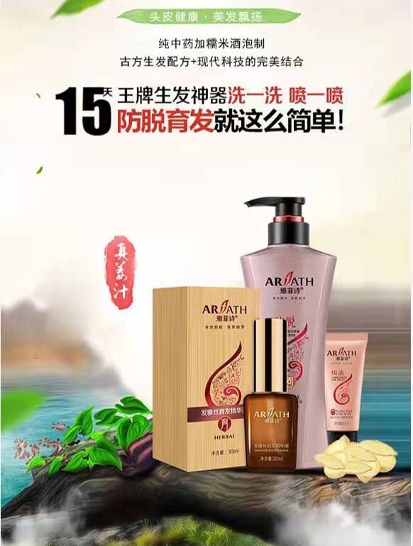 古方生发配方➕现代科技的完美结合。糯米酒加珍贵中草药(人参,侧柏叶,丹参,胶黄芪,川穹,防风,云南小黄姜)泡制,养发防脱,育发固发,防脱生发的有效保障。雅菲诗防脱育发的绝对王牌武器。