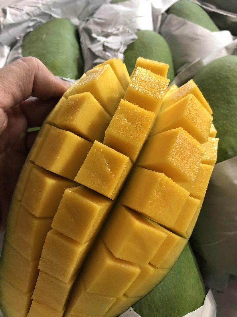 今天给大家亲测品鉴的是越南大青芒 在冬季能吃上一口甜甜香香的青芒也是一件美事,听说今日有大青芒可以亲测,马不停蹄飞奔而去。 外观篇 这次亲测的大青芒有两种规格,分别是5斤装和8斤装,8斤装一箱因芒果🥭个头不同,大概在4-6枚的样子。 单果的大小比手掌🖐️大,外观光洁没有黑斑,手掂后的重感也非常明显。 内核篇 果子切开后立马就有一种芒果的清香扑鼻而来,果肉颜色鲜艳,糖度测试达到了19度,达到这个数值已经相当不易了,处于糖度最佳范围区间。刀口划在果肉上可以感觉到果肉的嫩滑,生熟度已达8成,在到达您手中的那一刻,即是完美的食用度。 测评结果: 果肉大小:5颗星🌟🌟🌟🌟🌟 果肉甜度:4颗星🌟🌟🌟🌟 推荐指数:4颗星🌟🌟🌟🌟 稍后会给您带来亲测视频,敬请期待……