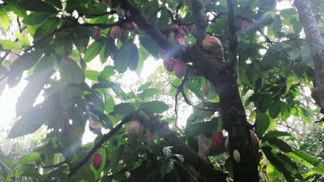 今天去侨乡玩了一天,那里面有很多种果树拍了几张照片,给大家分享一下咖啡果和可可果