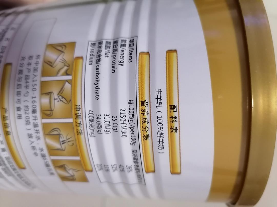 百年龙腾纯羊奶粉给我父亲买的,喝了一段时间来评价,原来喝牛奶过敏,现在换了这款羊奶,也不过敏了,口感好容易接受,日期新鲜,以后就喝这个了,商家服务好,快递也好,给个赞!
