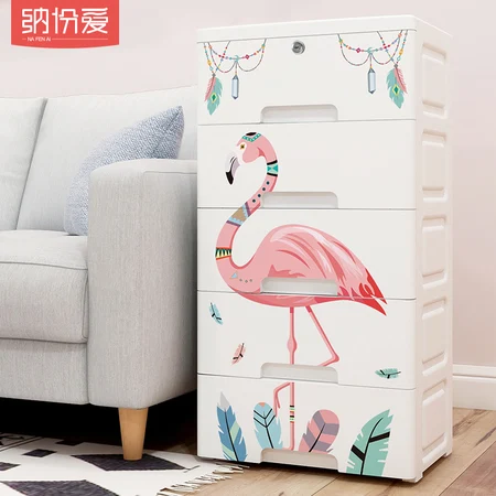 纳份爱 42面宽顶层锁头抽屉式塑料家用整理柜子收纳柜·42面宽【火烈鸟】