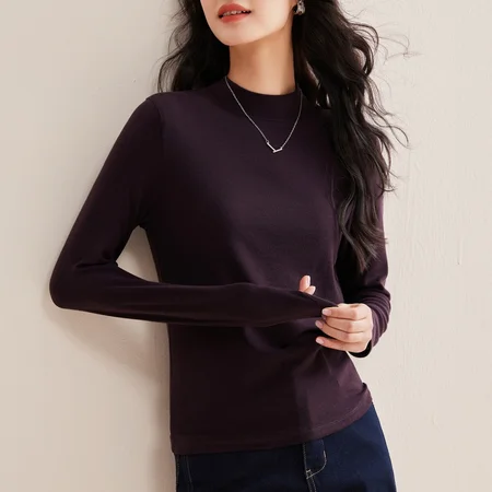 【羊绒触感】修娴云柔正肩超弹中领T恤R6030·龙葵紫