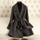 【羊毛蚕丝驼绒】航帆高品中长款收腰双面呢大衣2417·玛瑙灰