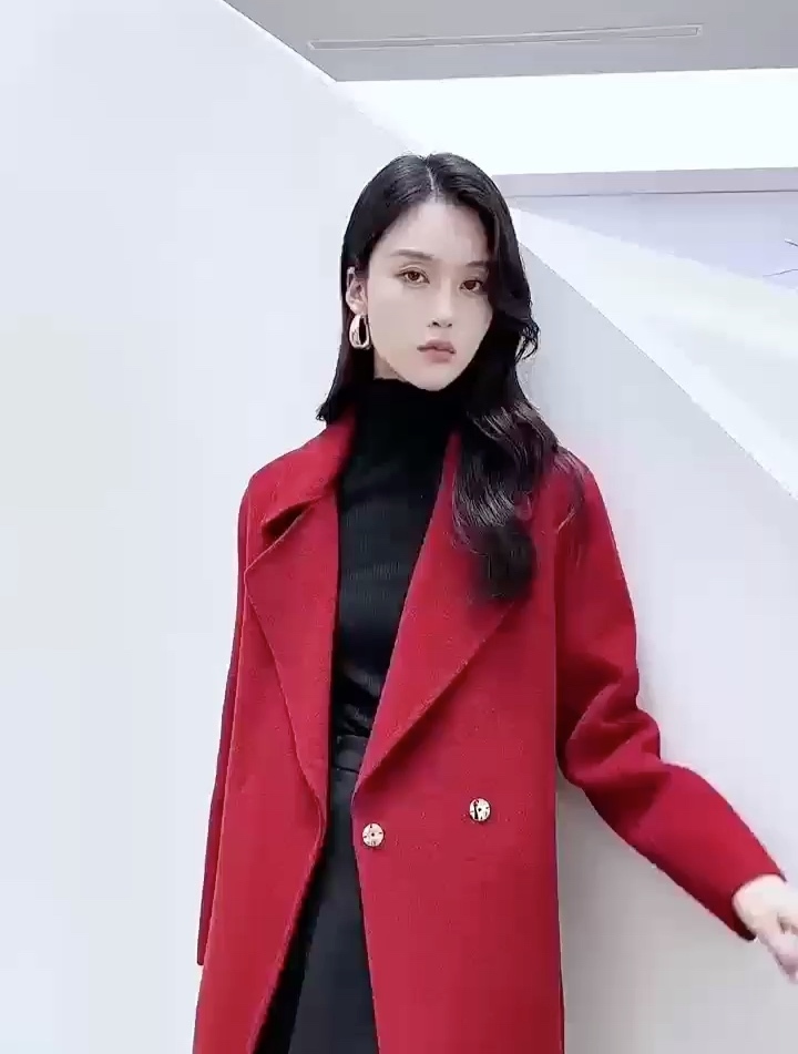 【100羊毛】航帆小翻领修身双面呢中长大衣2306·红色