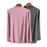 玉露浓 【清仓秒杀 /2件装】莫代尔螺纹半高领打底衫·粉色+深灰色