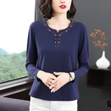 百媚生 95棉绣花长袖T恤9933..·宝蓝色