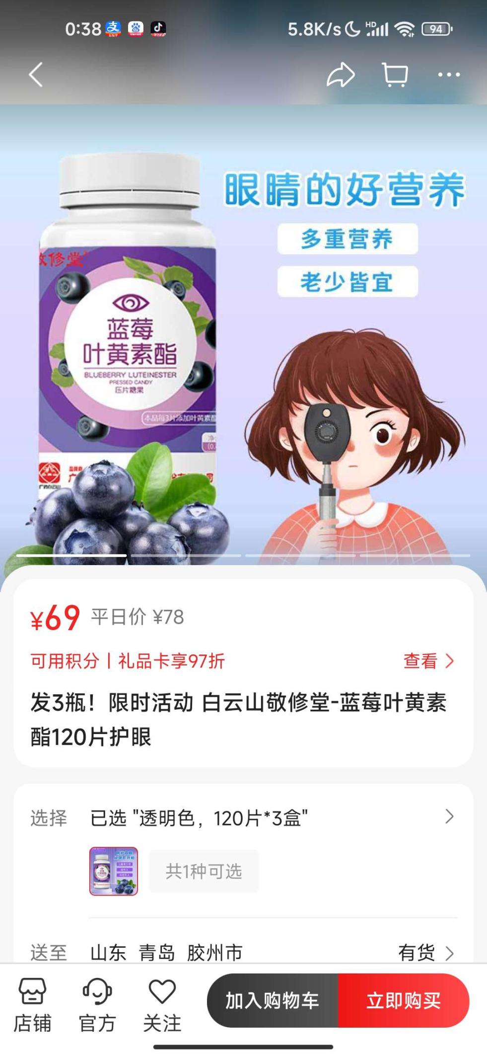 敬修堂的叶黄素酸非常好,性价比超高,坚持食用,希望有效果。