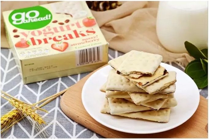 英国进口 go ahead 果悠萃酸奶饼干 1⃣️一开始买它吃也是因为他在英国真的超级火 时尚潮人都在吃,而且在英国年销售两亿的饼干!所以当然要试一下咯~ 还有就是包装好看,高颜值包装是仙女们的首选要素之一,包装可以当下午茶的背景图了,随便拍拍就可以PO圈啦~ 2⃣️再说说口感吧 饼干外层是酸奶涂层,货真价实 酸奶浓郁到吃完都要舔手指,嘻嘻嘻 饼干是小麦制成,香喷喷的口感比较酥脆,然后中间就是夹心啦,口味很多,多种选择,酸奶+小麦+果干 酸奶可口,酸甜程度算是适中,不会太腻,完美搭配哦,而且夹心里面的果肉都是一颗颗真实的果干,还蛮实在的~ 3⃣️关键是低热量!!!不需要担心热量高发胖的问题,每片据说只要71卡路里~ 4⃣️简直是工作、学习、聚餐、下午茶的必备小零食,反正我的嘴巴是根本停不下来~ 5⃣️一盒里面有5包,每包2片,拆包装的时候没忍心,都是先拍了再拆的吃的 总结:推荐五颗星😊 口感:🌟🌟🌟🌟🌟 健康:🌟🌟🌟🌟🌟 包装:🌟🌟🌟🌟🌟