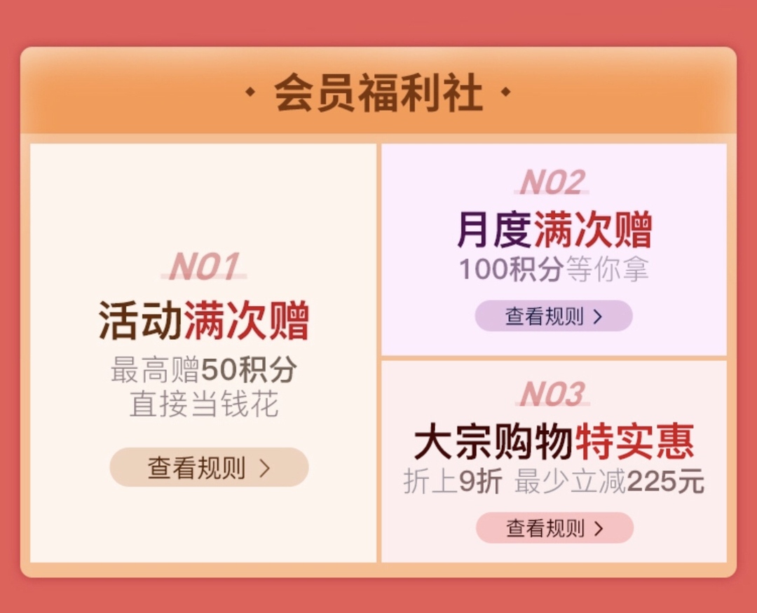没少在会员日捡便宜 我是老会员了 在这里给家人买了不少好东西 今天又发现有赠积分活动果断买买买 坐等赠积分