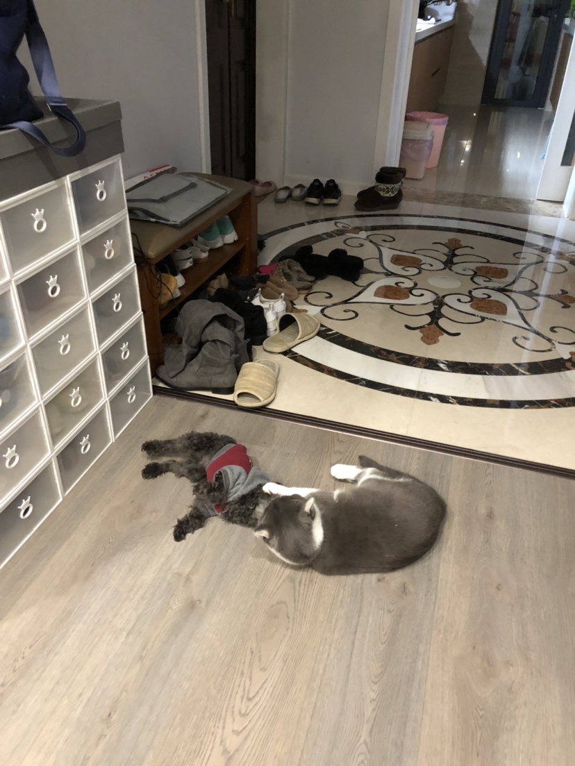 我家懒懒的蓝猫和调皮的小贵宾🐱🐶😘🥰😁