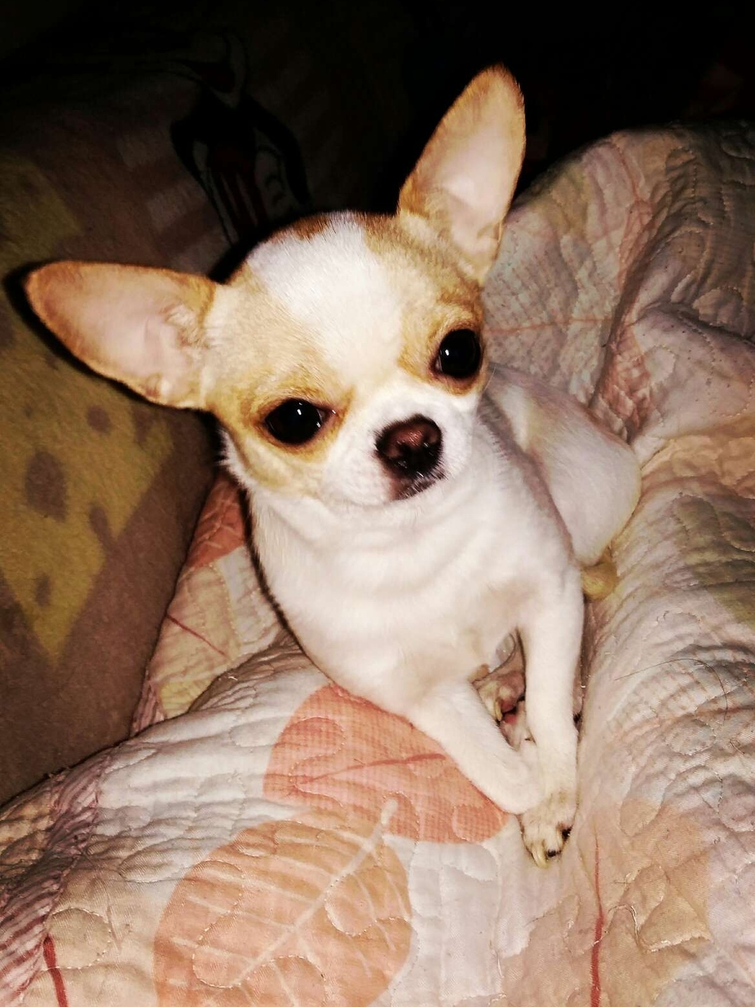 这是我家狗狗糖果,她是吉娃娃,女孩。每天我们休息时,她就卧在我们的被子上为我们保暖。