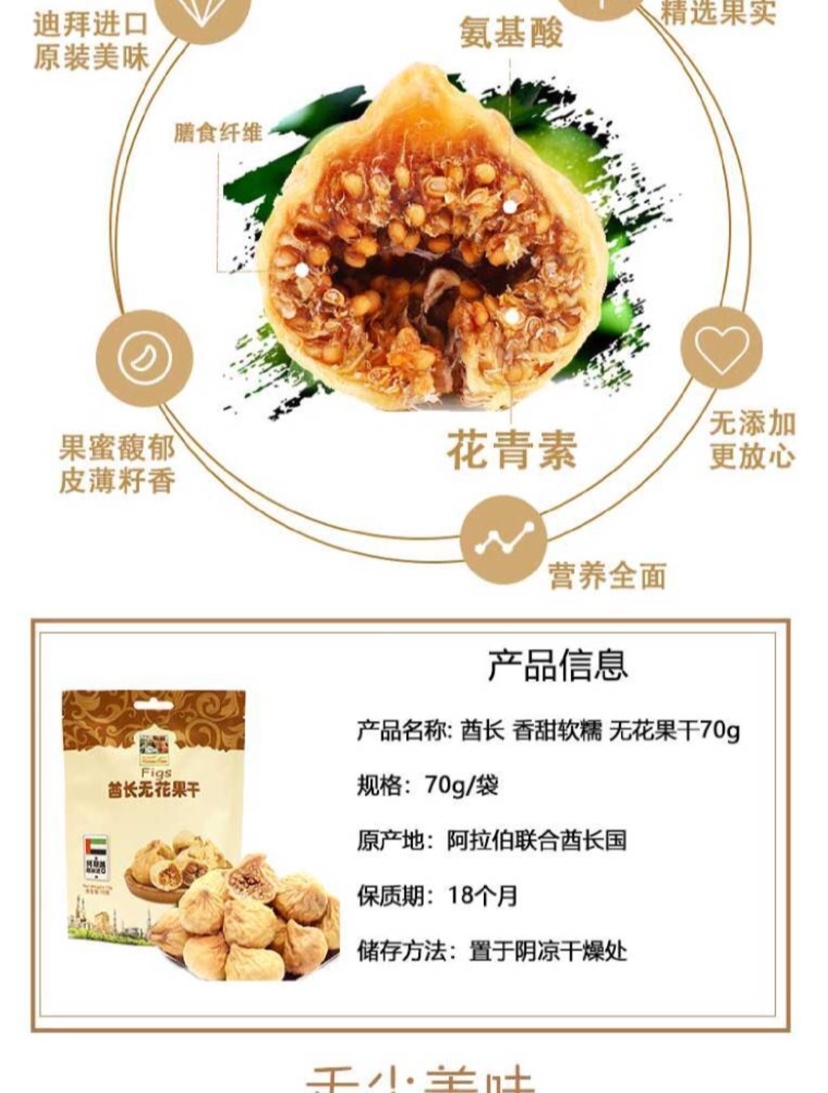 买了好几次这款无花果干了,酋长香甜软糯无花果干每天当零食吃,好吃不上火。