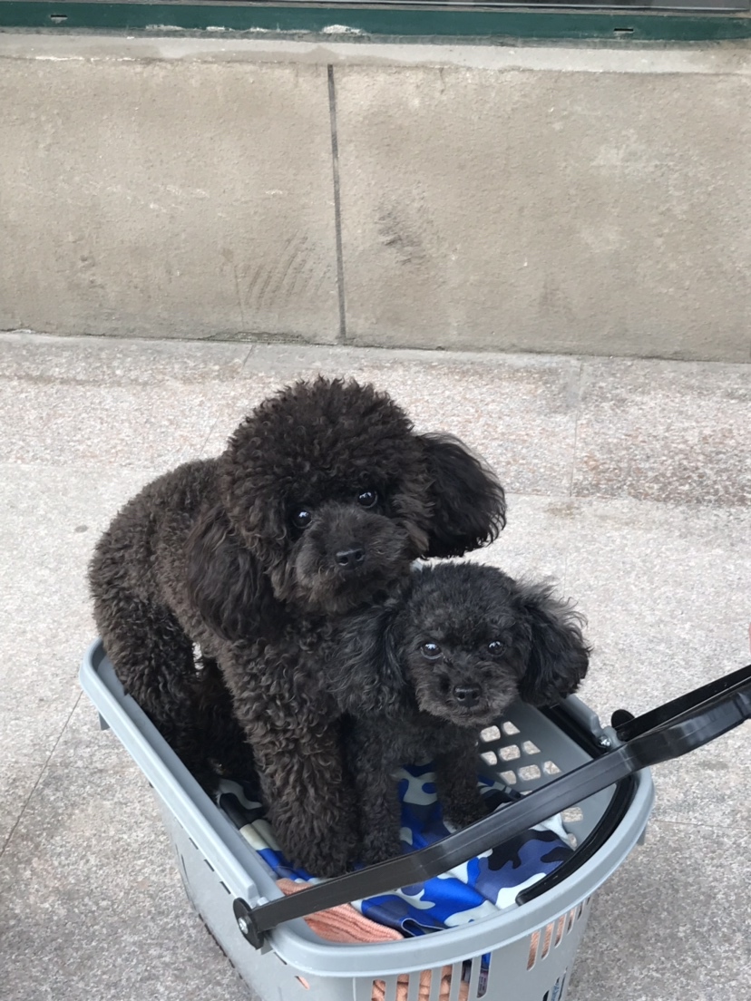 坐在小拉车里