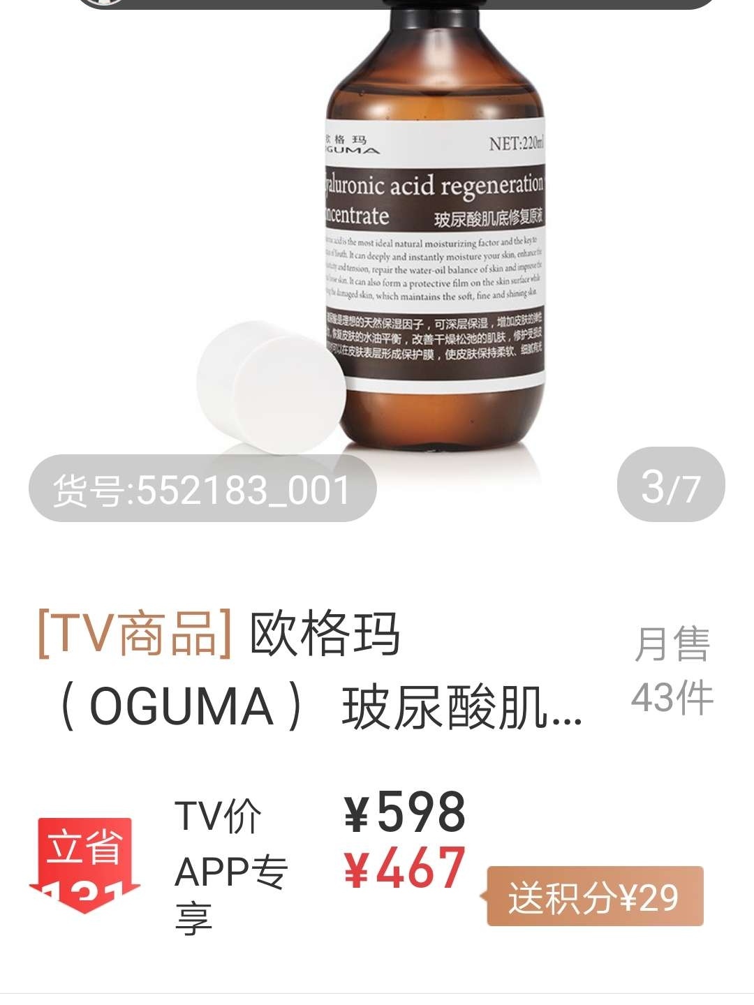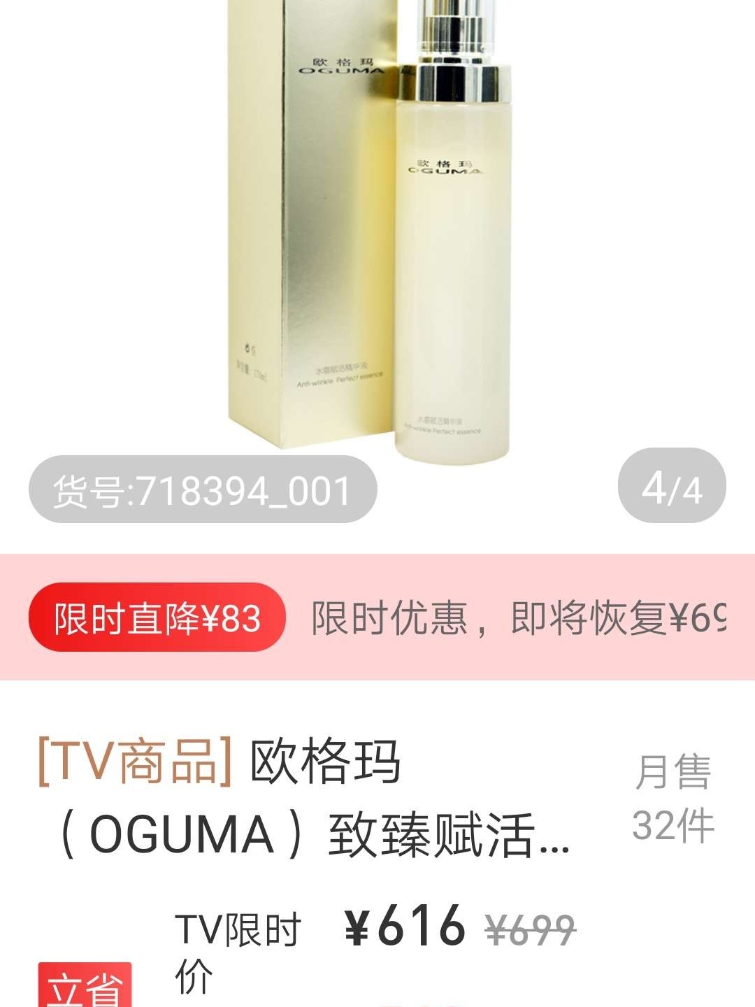 我通过优购物电视购物平台结实了这个产品,这个牌子的几个产品我一直在用,经常屯货屯货,如果"双十一"能再优惠,我一定会再入手入手入手,特别是水磨精华非常优秀,快用完了一直盯着它的动向,优惠了会毫不犹豫下手下手下手,我确实体会到了它的好!