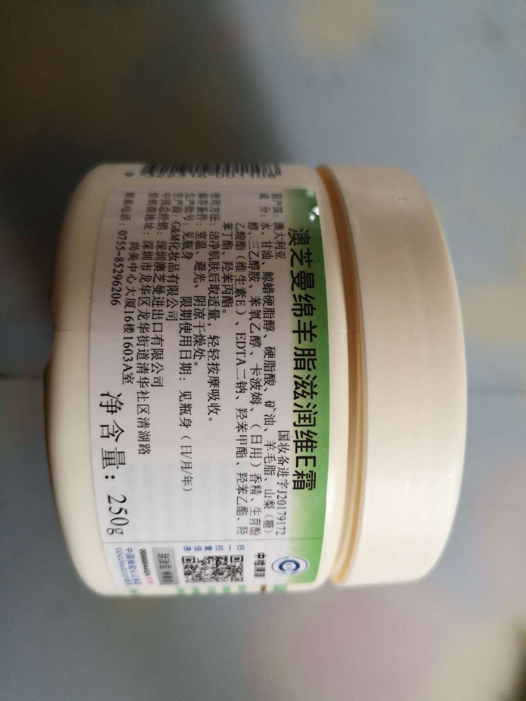 澳芝曼绵羊脂滋润维E霜,产品细腻润滑,满意。