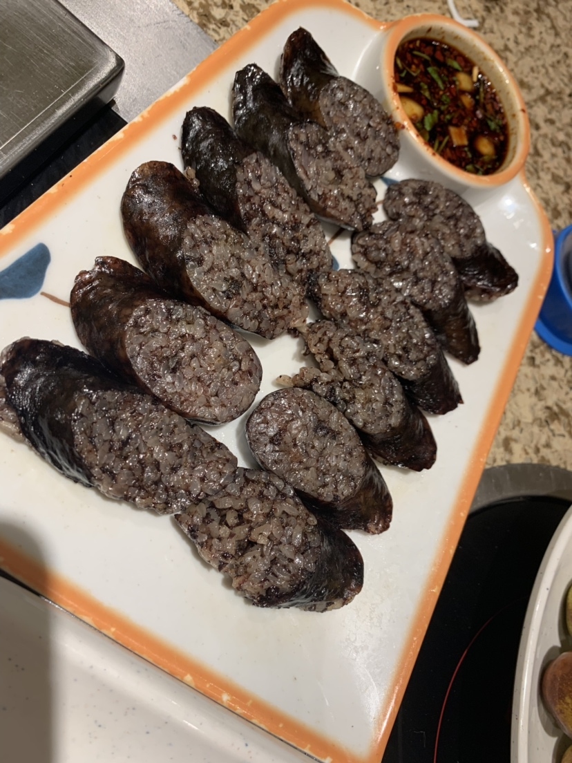 北京贼冷。外边全是大雾。来吃据说在北京朝鲜族都喜欢的烧烤。吃到了米肠。你吃过吗?😄
