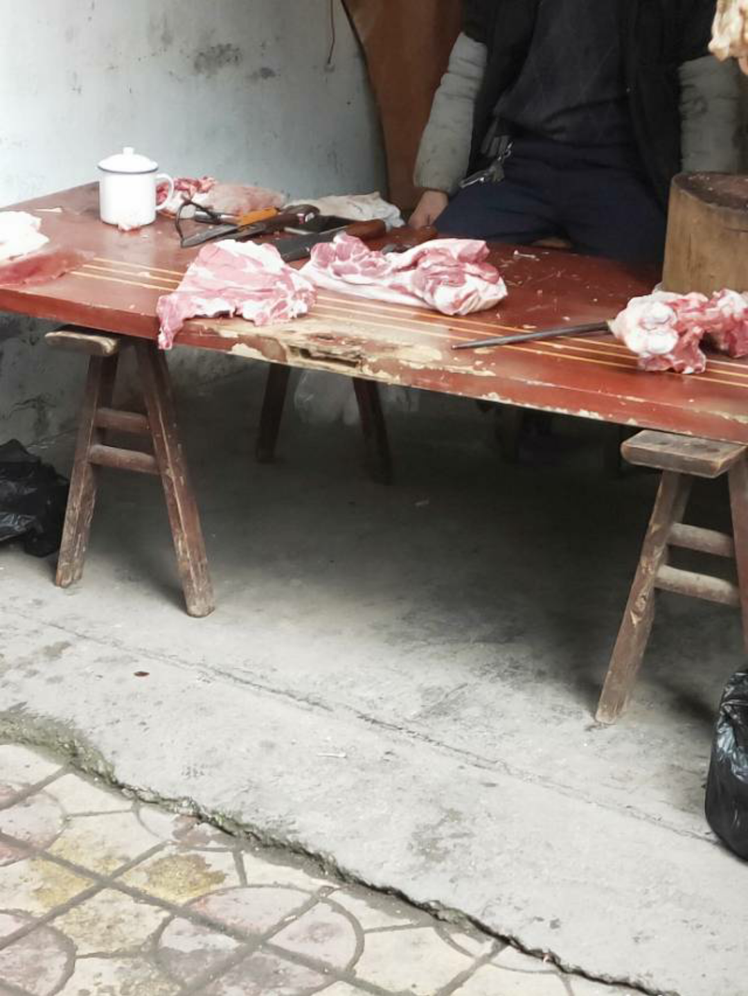 隔壁门面今天开始卖猪肉了,大家都准备买肉过年了,年的味道越来越浓。