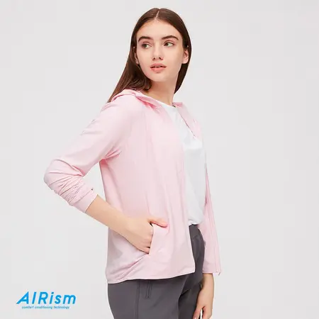 花雨女装AIRism网眼拉链连帽防晒运动开衫·粉色女