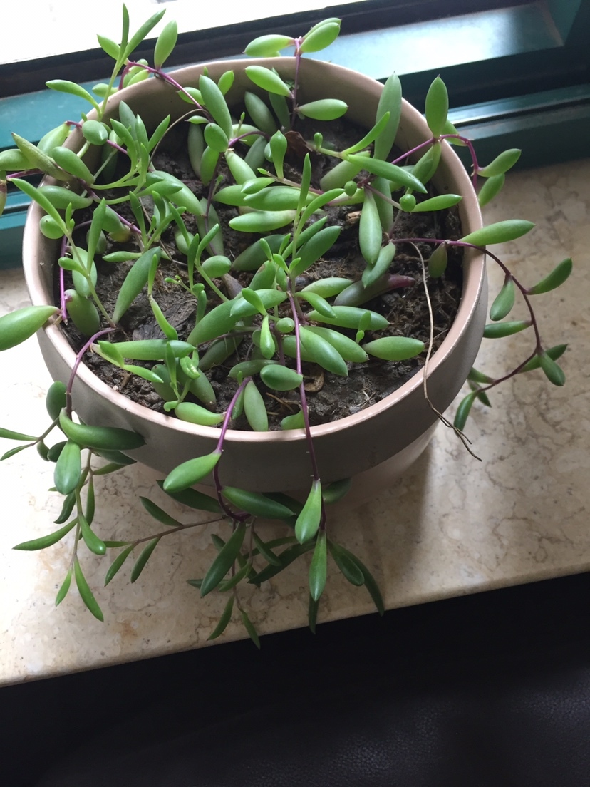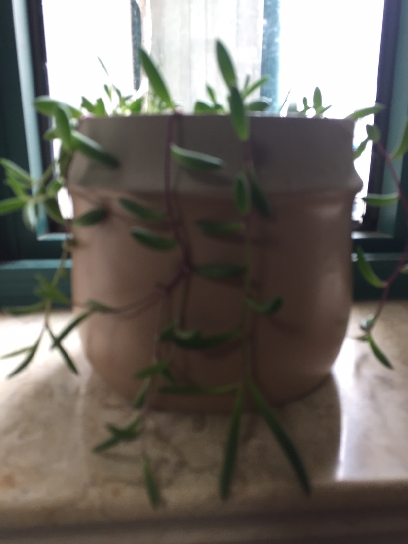 长的是美人指吊兰,圆的是佛珠吊兰