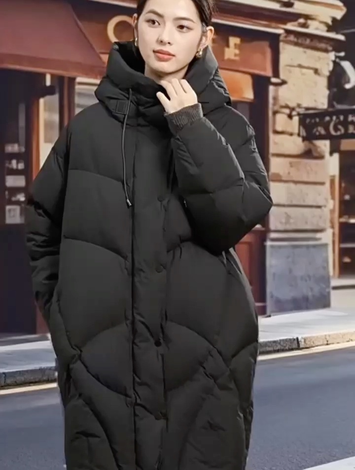 【90白鸭绒】诗佰露高级感中长连帽羽绒服250232·本黑