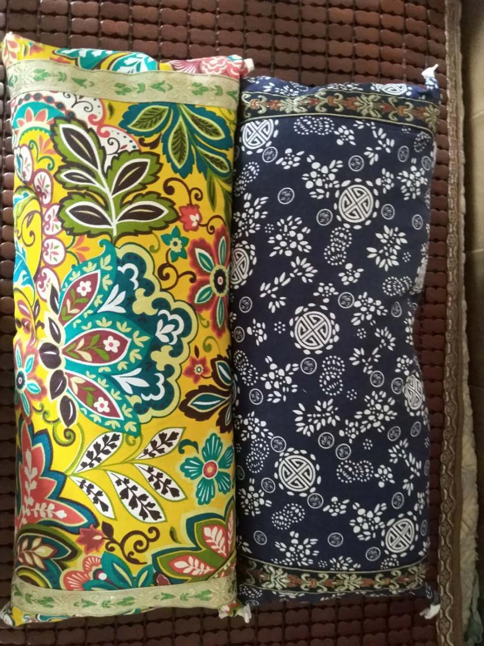 枕头很漂亮,去年买了两个,今年看到做活动赶紧又够了两个。沉沉的份量,浓浓的艾草香,很实惠!