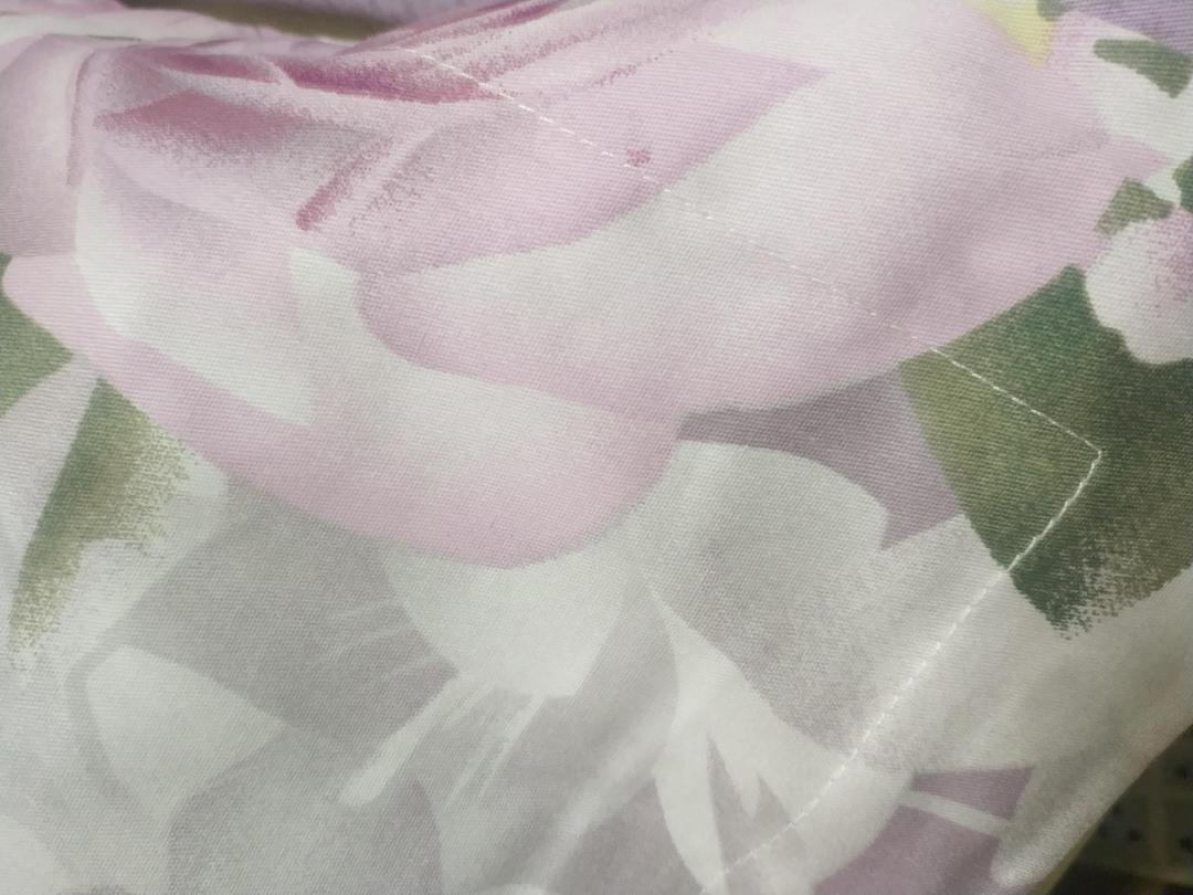 物超所值!全棉面料,还有棉香味,手感细腻顺滑。缝纫线也很精致,花型是我喜欢的,还会继续回购。值得推荐!