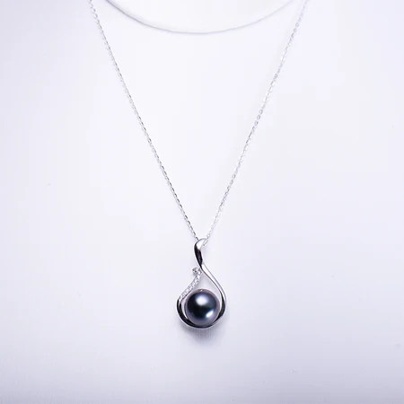 岛上明珠 大溪地海水黑珍珠强光吊坠s925银配饰·黑偏绿