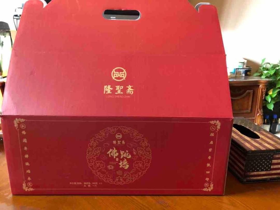满满的两大箱,赶在国庆节假期之前到了,费尽心思也不知道过节送什么礼好,碰巧看电视购物看到了佛跳墙,只是抱着试试的心态直接下单了,没想到出乎意料,包装非常上档次,食材很新鲜,品罐很精致,物流很快,送礼佳选,值得推荐。