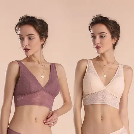 悦晓 舒适大码100%桑蚕丝背心式文胸2件组S098·粉色+豆沙