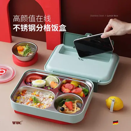 高颜值在线,贴心懂你,营养分格!德国🇩🇪WUC304不锈钢保温饭盒儿童小学生上班族便携分隔型四格便当餐盘饭盒·天蓝色
