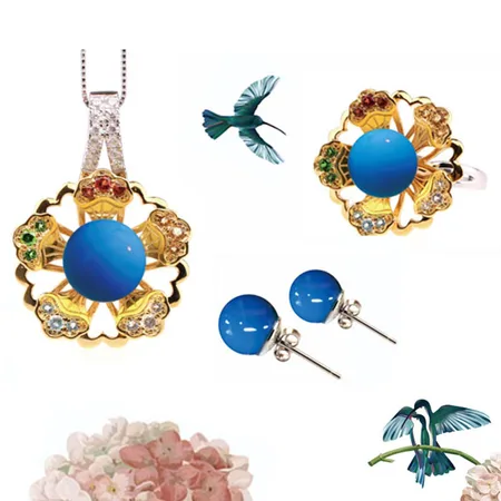 【墨西哥蓝珀S925五行转运套装】 蓝珀镶嵌多种宝石,顶级镶工👍🏻 五行包涵借着阴阳演变过程的五种基本动态:水(代