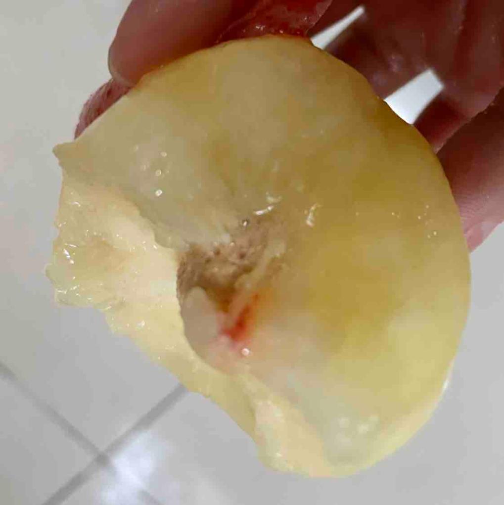 放了几天以后,软软的,桃皮很轻松的就揭掉了,即使是里面最小的桃子,桃味都很浓,桃汁很多,不爱吃水果的孩子很爱吃。直播期间买的很划算,在惠买买水果从不失望。