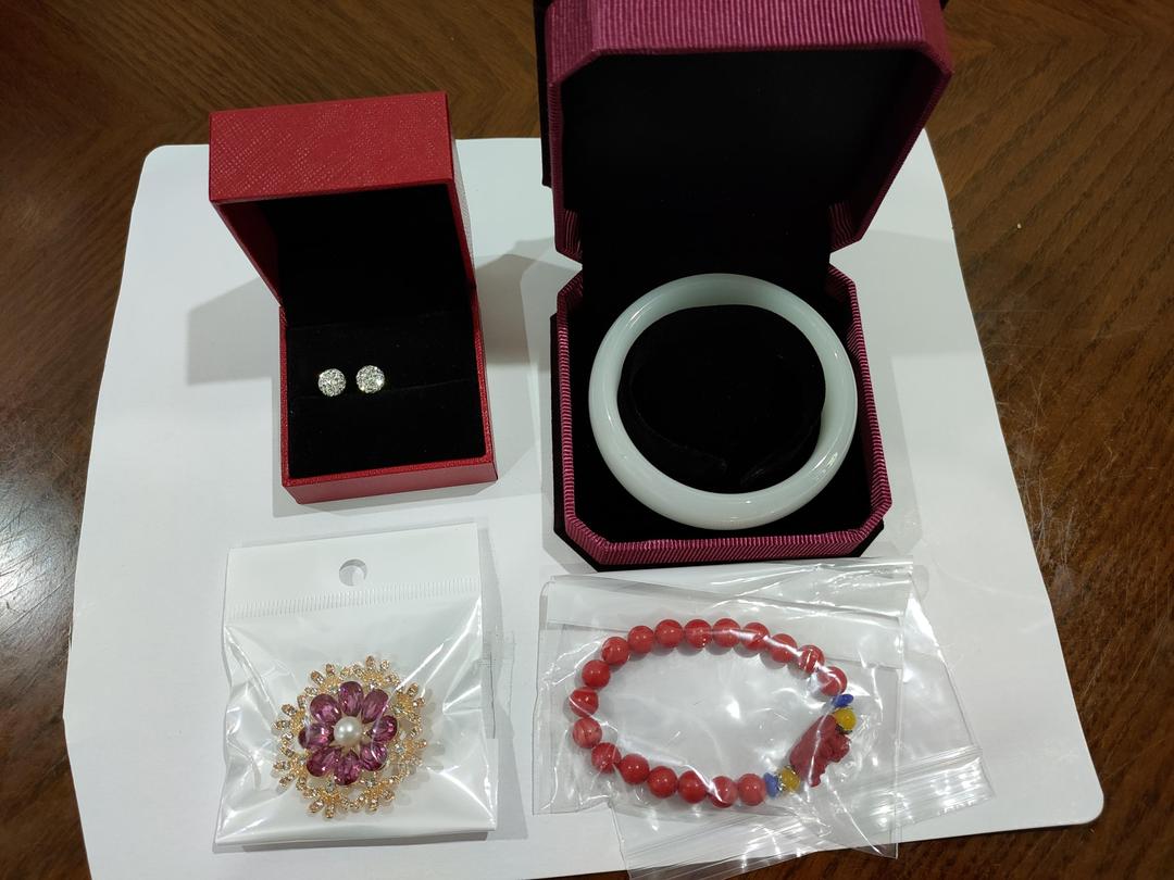 我只花了69元买了一对耳钉,故对当晚直播的奖项没抱什么想法。但今天收到包裹后打开一看,让我喜出望外,下单奖,订单奖一个不漏,还多送了一条朱沙小珠手链。瞬间盛云轩这三个字让我记住了!另外:手镯好漂亮!请问商家它是什么材质的呢?谢谢!