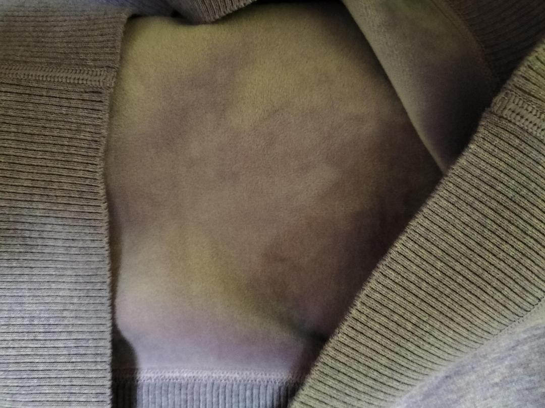 没有色差,是我喜爱的藕荷色,面料手感柔软,中厚,内里绒面舒适。