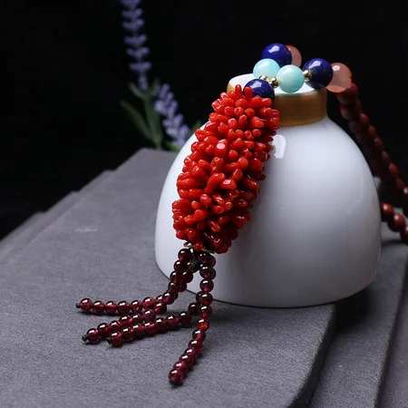 映时手工编红珊瑚毛毛虫项链