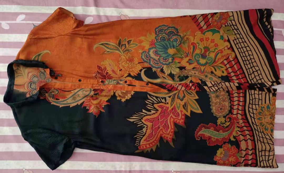 鸢尾遗香,衣服的撞色效果好,图案大,近处看到的是色块没有那么乱,远处看到的是图案,但与环境相比也不觉得图案乱。质地柔软。如果是薄身材的人穿上,那更显气质了。领子、肩、上袖儿,做工都很精致,所有连接处都不是缝完就得,而是包边再缝纫,这样的衣服看上去整齐也延年。配件腰带虽不起眼,但做工和两个小钉珠也是要吃功夫的,扣子可能是很简单的材质,但包扣的材料和手艺真的不简单,细想想如果缝上普通扣子,那整体效果肯定打折。