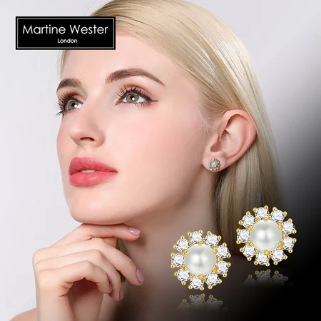 玛汀薇思 镀18K金经典珍珠梦露耳钉·白色