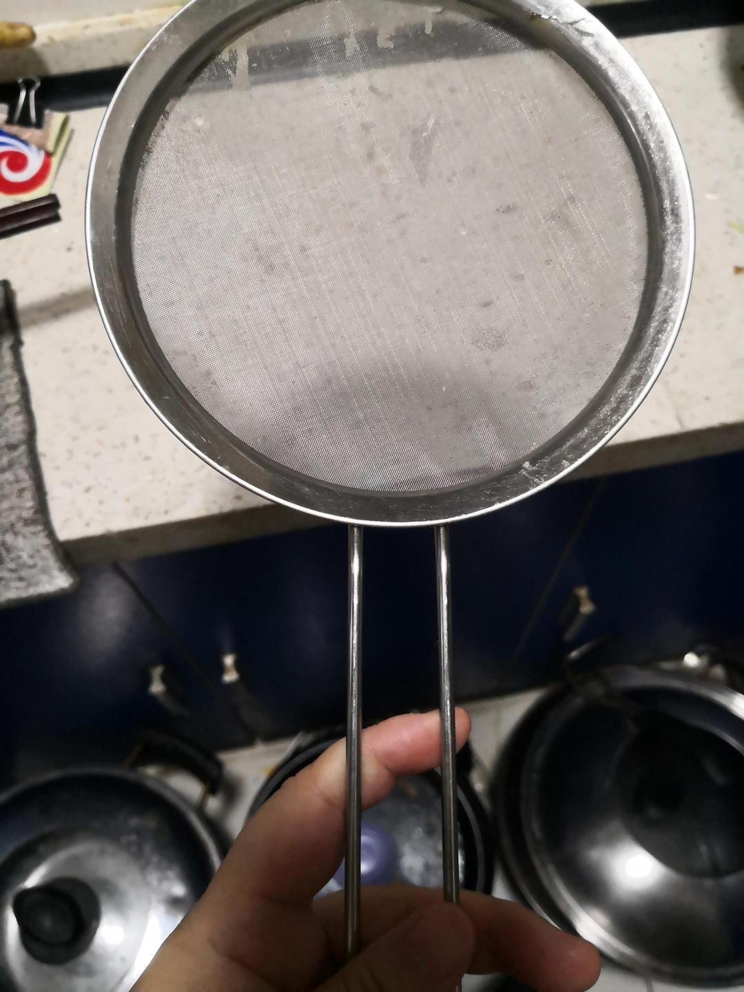 不锈钢漏勺很大,过滤渣汁细腻方便,简单又实用。