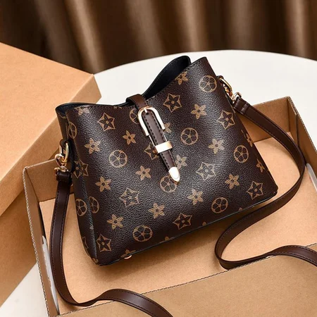 易世汀新款印花时尚大气斜跨包女包12559·老花款咖啡