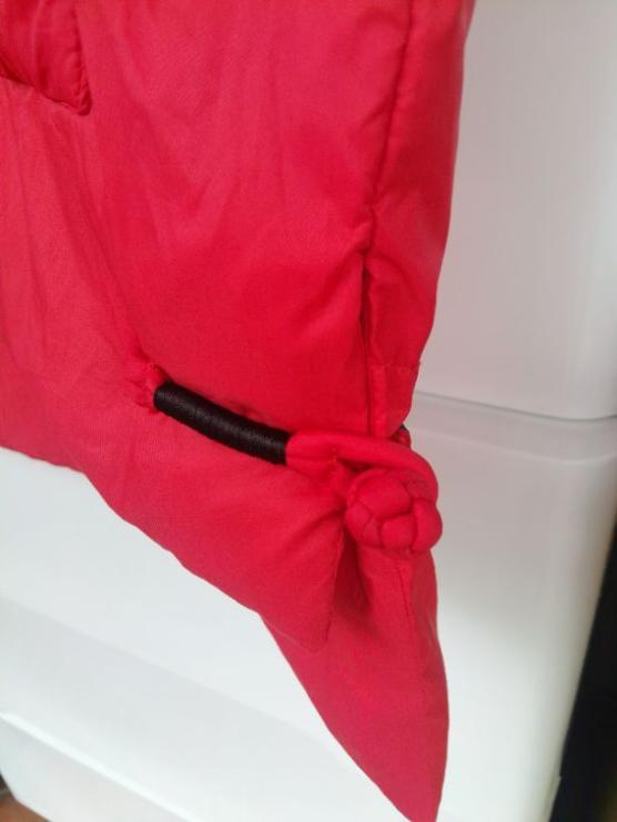 冲这款衣服的版型买的。收到很满意。颜色如图,与商家图示相符合。盘扣做工精致。轻薄,柔软,前短后长,还有一对口袋,很喜欢。羽绒服,要是能配一个收纳袋就完美了。另外,外袋破损,商家宜督促快递斯文一点,毕竟包装只有两个胶袋。基于衣服好看,依然给五分。