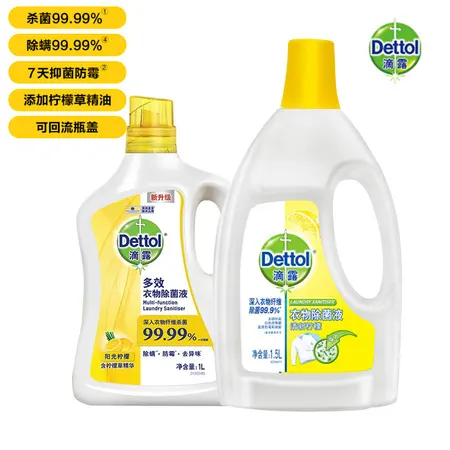 Dettol/滴露柠檬除菌液消毒除螨1.5L+1L(2瓶装)