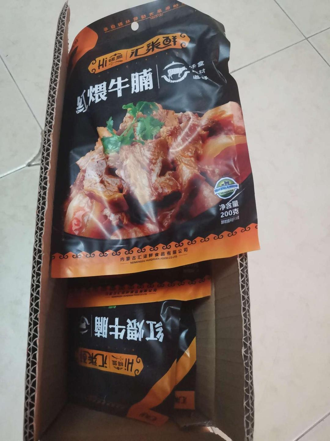 吃了后才来评价的。真的是惊艳。开袋即食的,没有多少汤,是大块肉,有带筋的,不带筋的都很软烂,而且不太咸。超实惠。点赞!已推荐给亲朋购买。