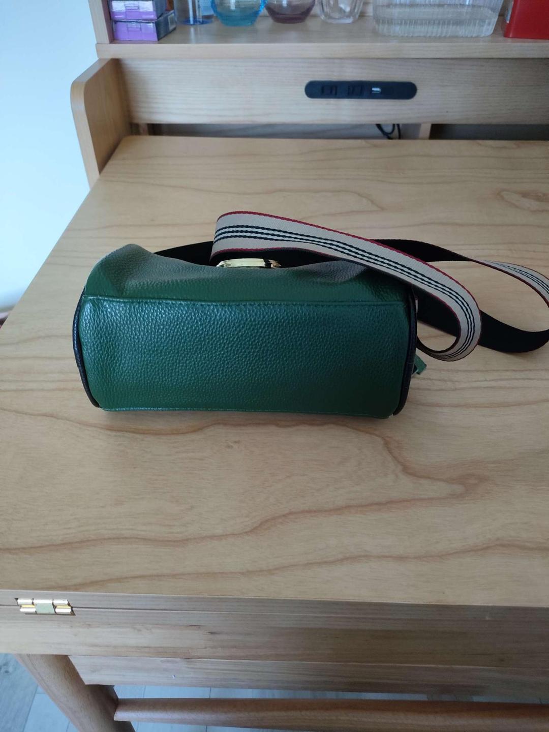 节前几天收到啦,正好新年背上美美哒,选的是绿色,很靓丽,很飘逸,大小正好,手机,零钱包,干湿纸巾,钥匙等都能装下,非常实用的,亮点是包包正面装饰的靓鉆是可无限转动的轮盘,预示新年好运自然来哟!好喜欢好喜欢啊!
