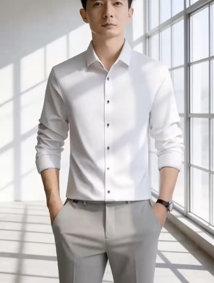 无痕易打理条纹提花百搭长袖衬衫男士亲肤商务休闲衬衣1021·高级灰