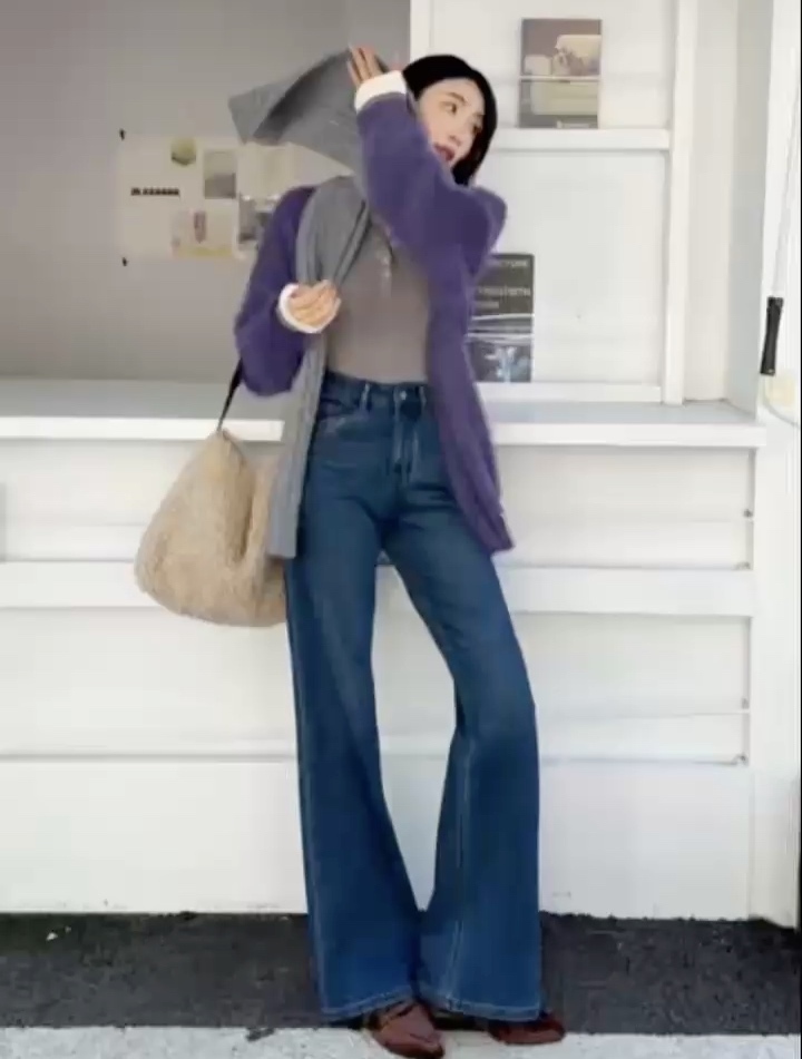 FORMSHEA四面弹织绒加厚蓝色叭裤牛仔裤显瘦新款女裤5901·蓝色
