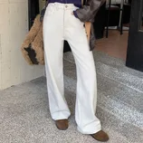 FORMSHEA复合绒阔腿四面弹牛仔裤5896-2·杏色