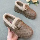 京昇轻便厚底羊羔毛乐福鞋26-1·咖色