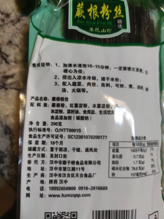 蕨根粉。干净。包装很好。200克一袋。方便使用。是信得过的食品。