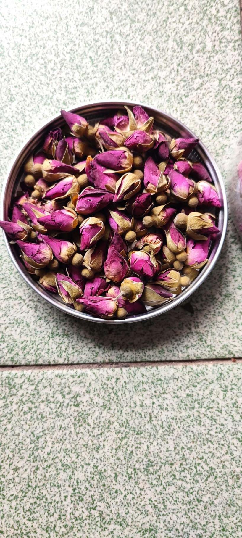 重瓣玫瑰,花朵饱满、颜色暗红、没有异味、有淡淡的花香、汤清、微暗红、可口非常好喝。